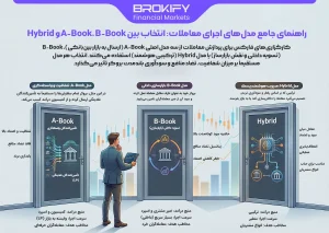مدل هیبریدی (Hybrid) ترکیبی از A-Book و B-Book است و بسیاری از بروکرهای مدرن از مدل Hybrid استفاده می نمایند. بروکر با تحلیل رفتار معاملاتی کاربران تصمیم می گیرد کدام سفارش به بازار ارسال شود و کدام به صورت داخلی تسویه گردد.