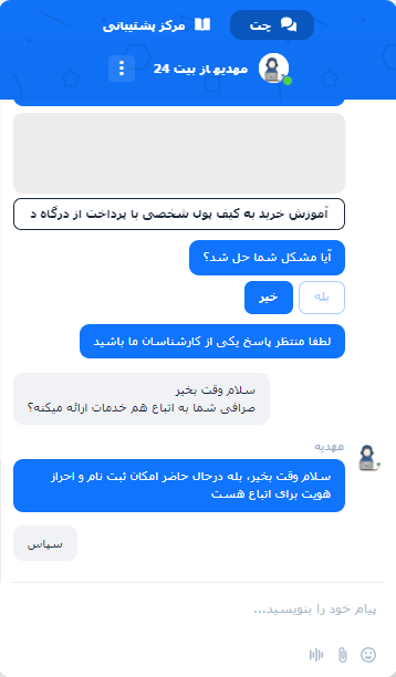 صرافی بیت24 (Bit24) یکی از صرافی های قدیمی در ایران محسوب می شود که از سال 98 به کاربران خدمات ارائه می نماید و با توجه به بهبود روزافزون این صرافی و همچنین خدماتی از جمله ربات معامله گر، امکان انجام معاملات فیوچرز در کنار معاملات اسپات، گیفت کارت و... و همچنین مشخص بودن واضح آدرس این صرافی (در قسمت فوتر سایت رسمی بیت24) و همچنین امنیت مناسب، این صرافی را به کاربران توصیه مینمایم و به نظرم کاربران میتوانند از خدمات مناسب این صرافی بهره مند شوند.